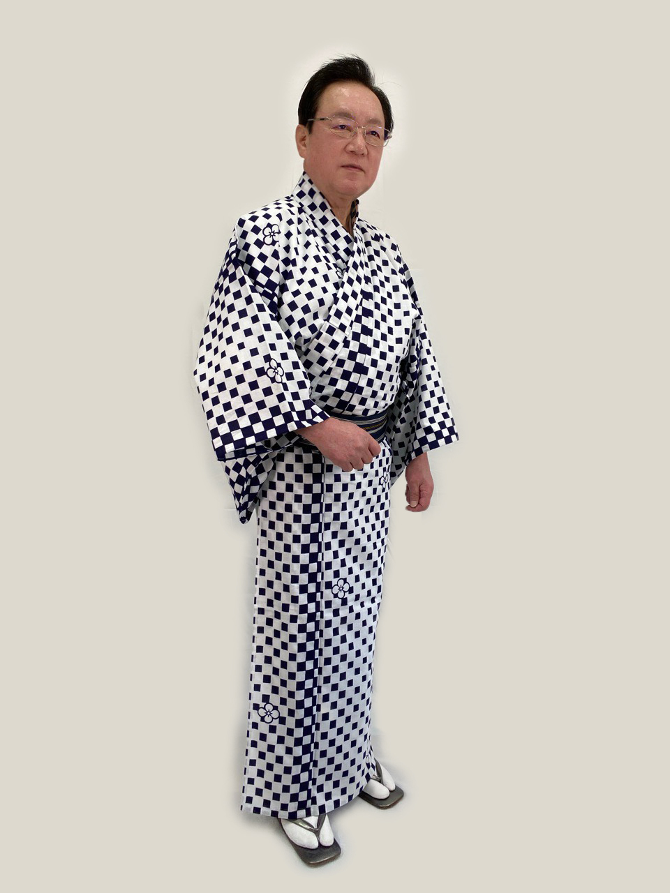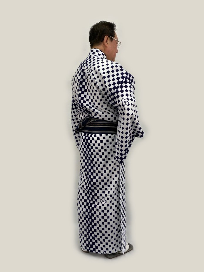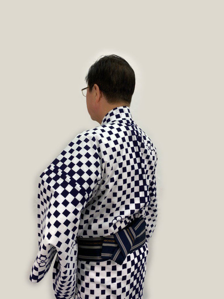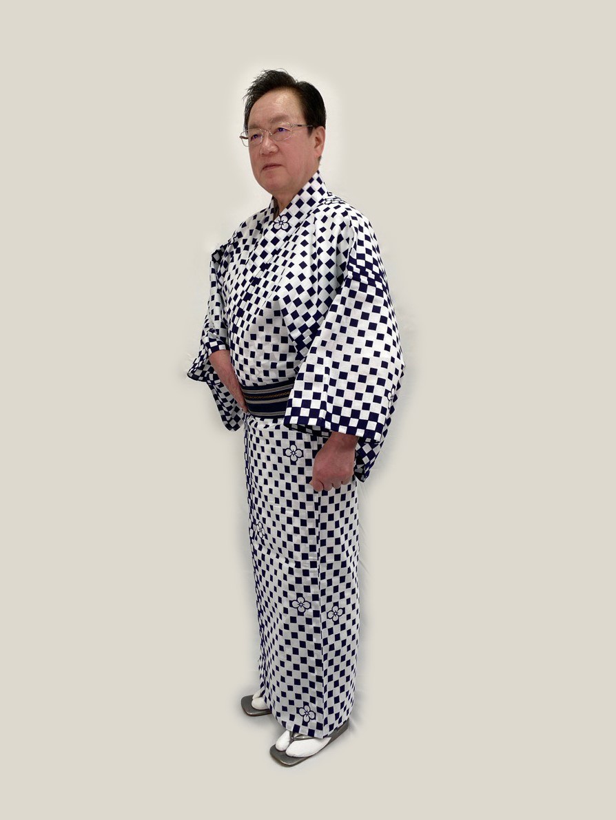 1号柄(白地に紺) 市松花かつみ文様 綿100%